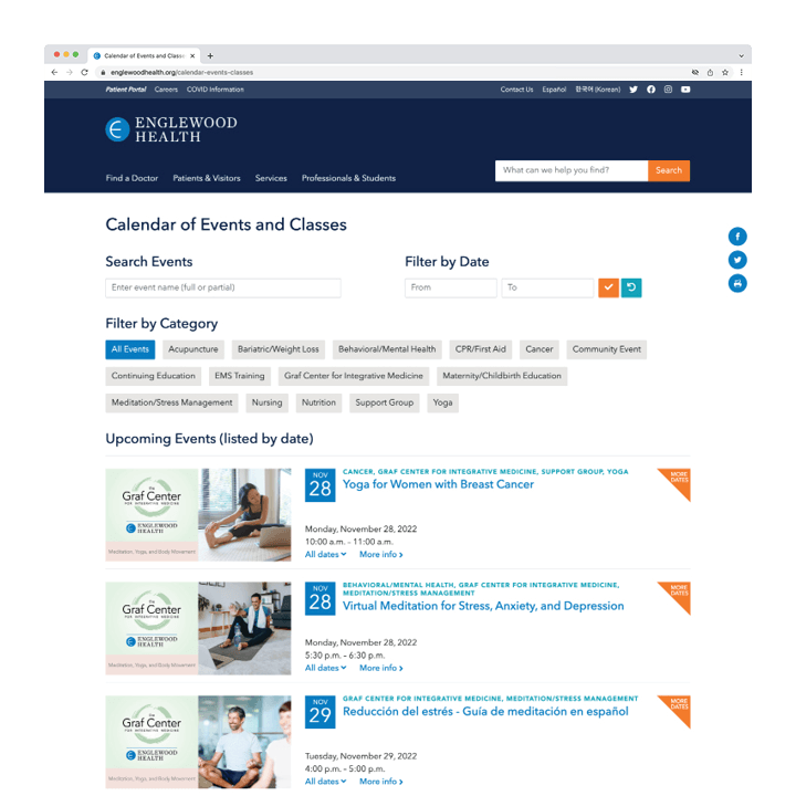 - It was determined that Eventbrite best fit the organization’s needs, but the platform does not accommodate event listings that do not require registration/ticketing.